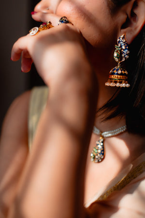 Mumtaz is crafted in 925 sterling silver, with Meenakari, kundan and real pearls.